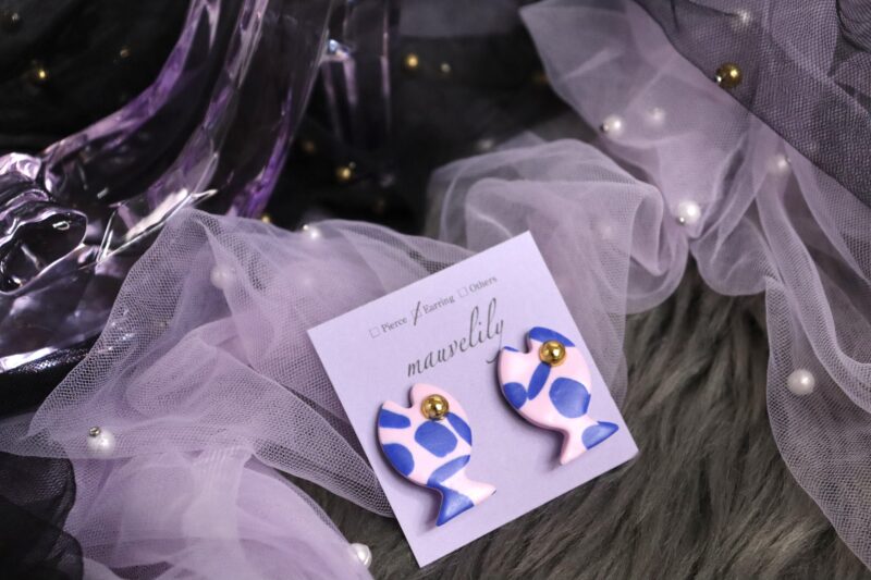 - ポリマークレイ(オーブン粘土)で作成した魚の形は、作るたびに柄や色味が変わる一点物!世界に一つだけのお魚さんをあなたの耳に♡
