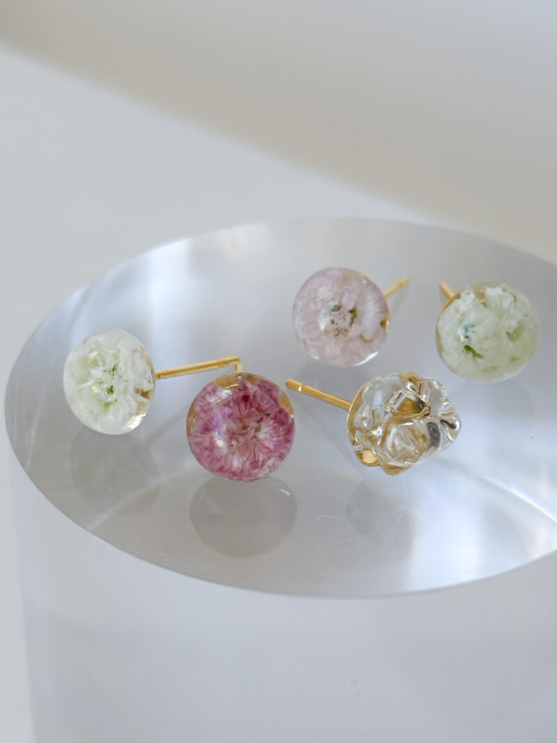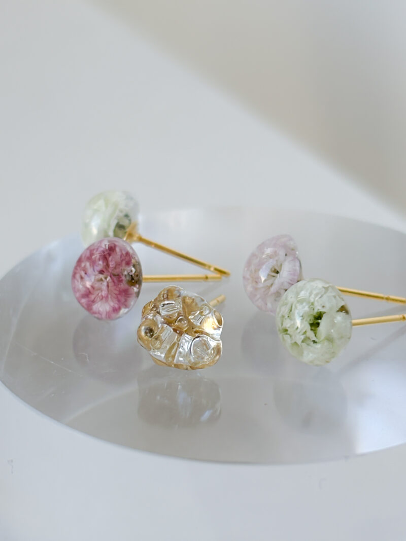 ・透明度が高いレジン液を使用しておりますが、劣化や花の退化の原因となりますので、直射日光、高温多湿を避けて保管してください。
