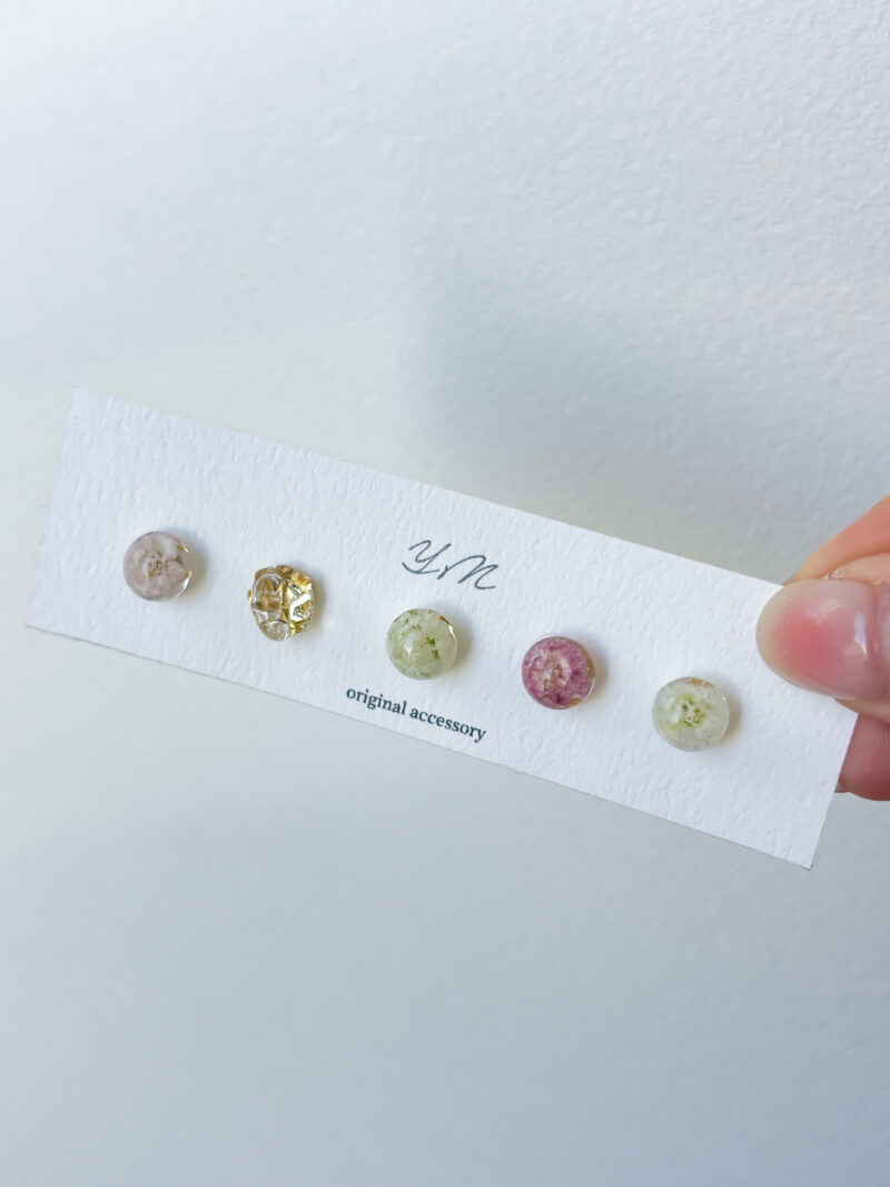 YM〔YM〕 【受注生産商品】選べる5粒セット サージカルステンレスピアス 花 ピンク ホワイト オフィス 小ぶり 小粒