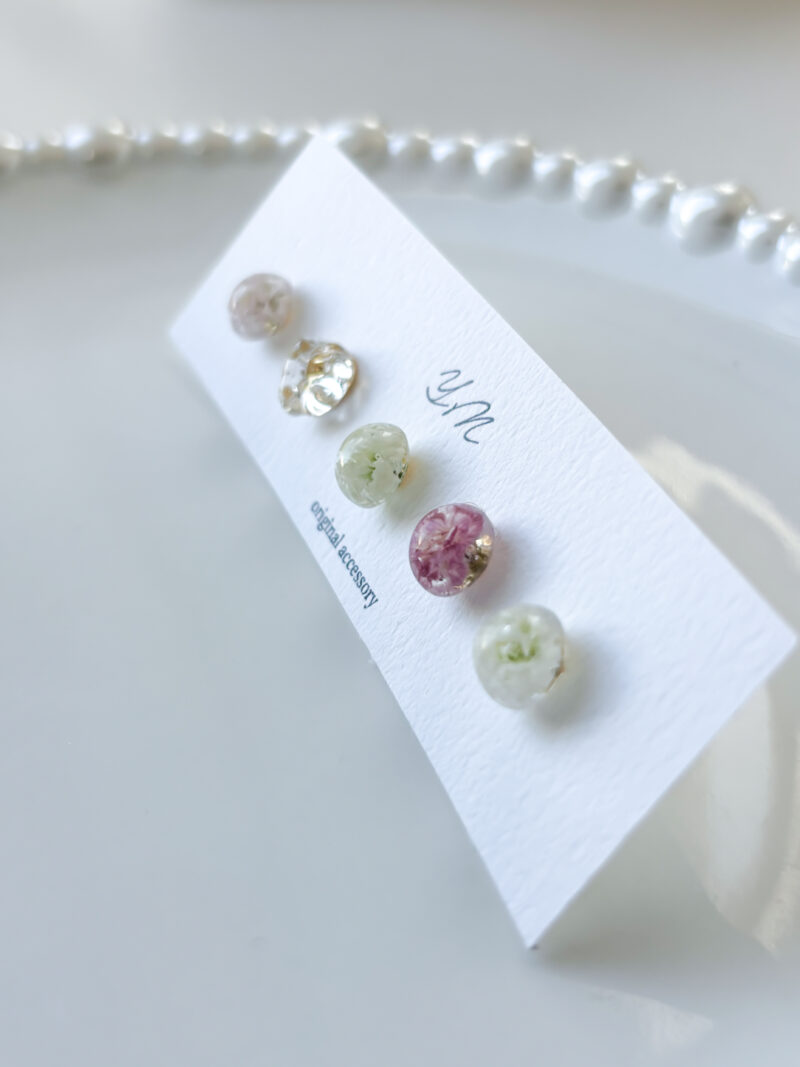 - 【受注生産商品】選べる5粒セット サージカルステンレスピアス 花 ピンク ホワイト オフィス 小ぶり 小粒