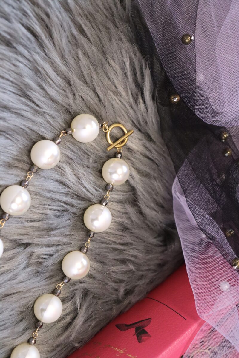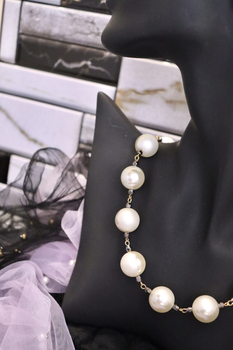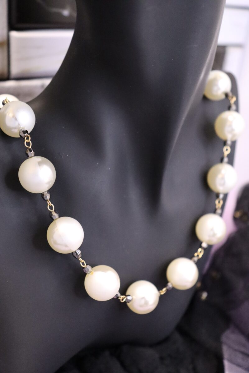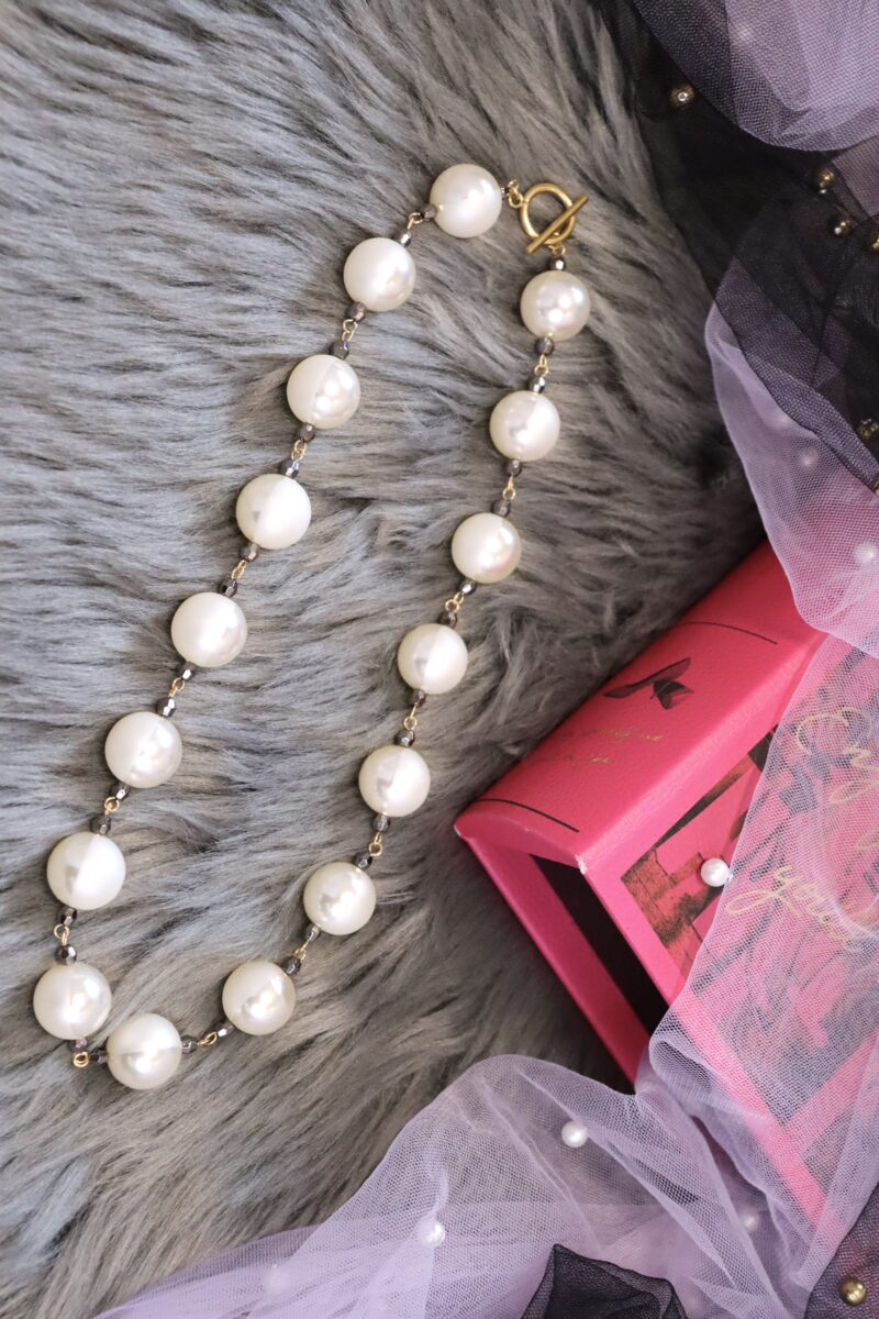 - 16mmの大ぶりパールで存在感あるパールネックレス。パールは、マットとツヤのハーフ素材となっており上品な印象です。